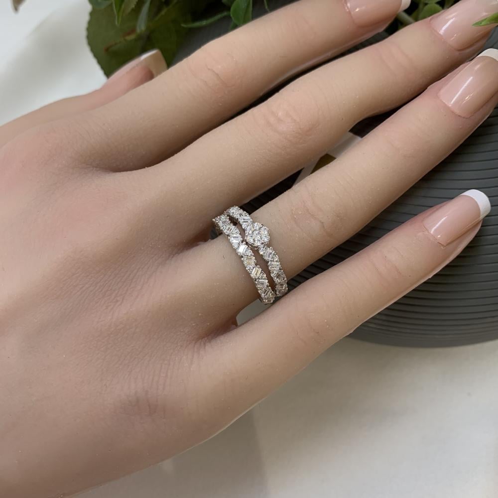 - المواد: ذهب أبيض عيار 18 مع تصميم رائع مزين بالألماس اللامع.