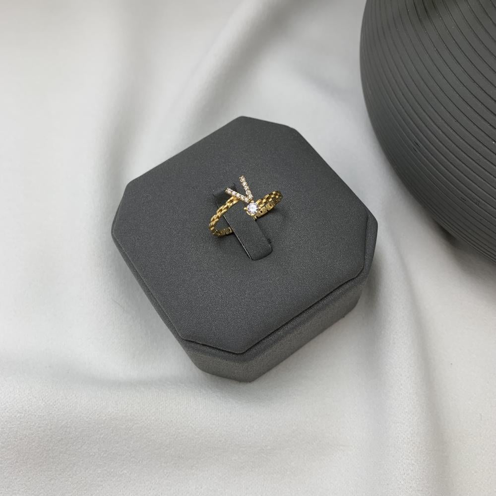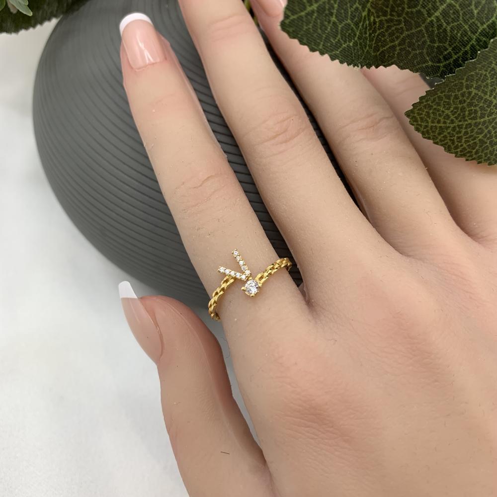 اسم المنتج: خاتم حرف V تصميم الألماس – عيار 18 – الوزن 1.5 جم