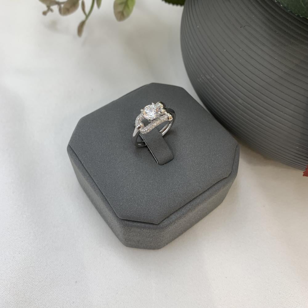 خاتم إيطالي ذهب ابيض تصميم الألماس عيار 18