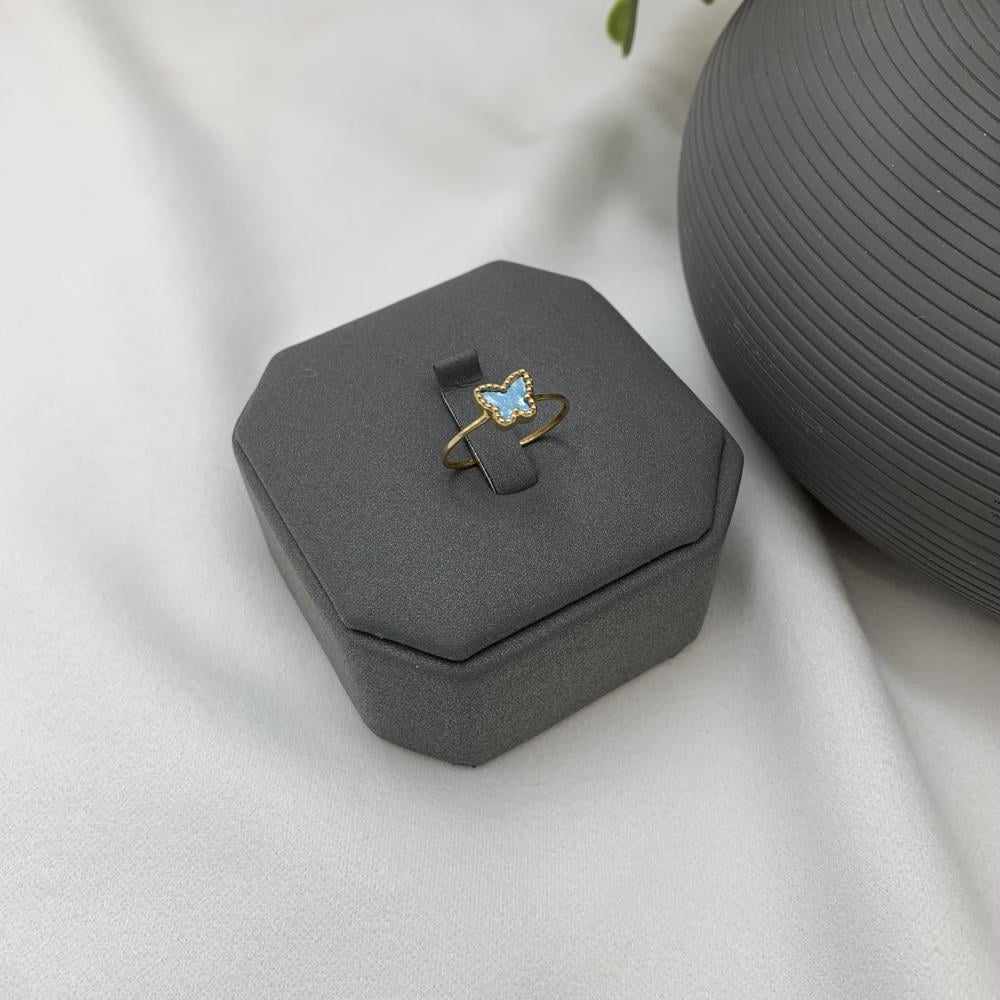 خاتم الفراشة إيطالي عيار 18 باللون الفيروزي | ذهب صافي – الوزن 0.7 جرام