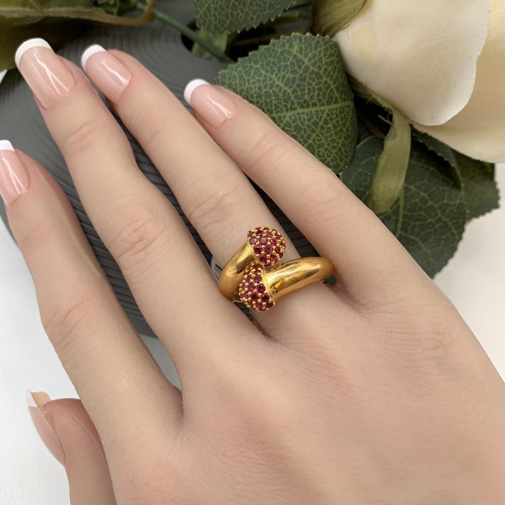 يتميز التصميم بنقوش فنية متقنة تضفي على الخاتم عمقًا ورقيًا، مع لمسة اللون الأحمر التي تضفي طابعًا ملكيًا وأنيقًا، مما يجعله قطعة مثالية لإكمال إطلالتك سواء في المناسبات الخاصة أو الاستخدام اليومي.