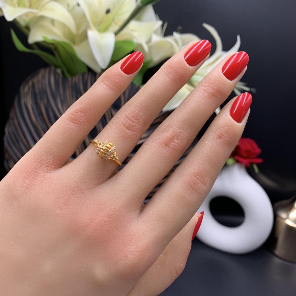 تألقي بفخامة التصميم وبساطة المظهر مع خاتم ناعم تصميم الألماس عيار 21 من متجر مجوهرات أفال – قطعة تجمع بين نعومة الذهب الصافي وفخامة التفاصيل المستوحاة من بريق الألماس، لتمنحك لمسة أنثوية راقية تناسب كل يوم وكل مناسبة.