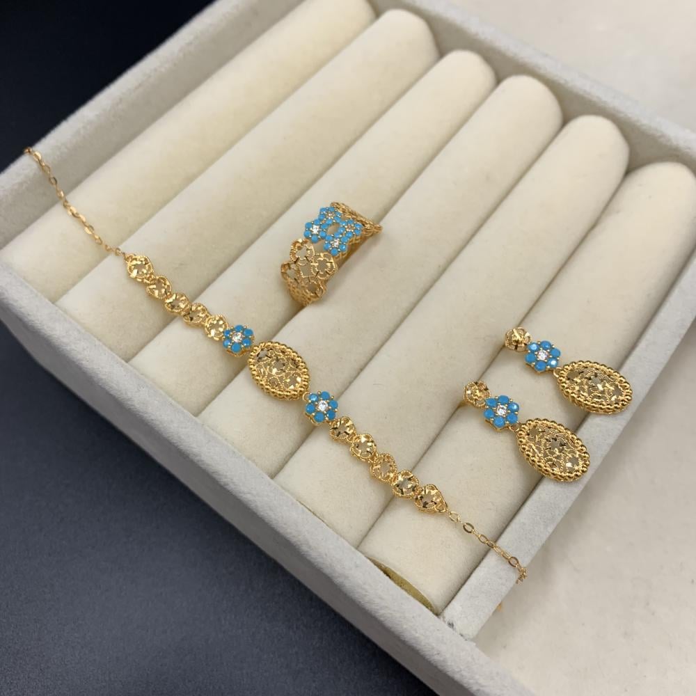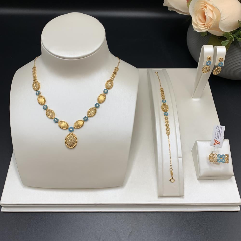 طقم بحريني باللون الفيروزي عيار 21 الوزن 17.9