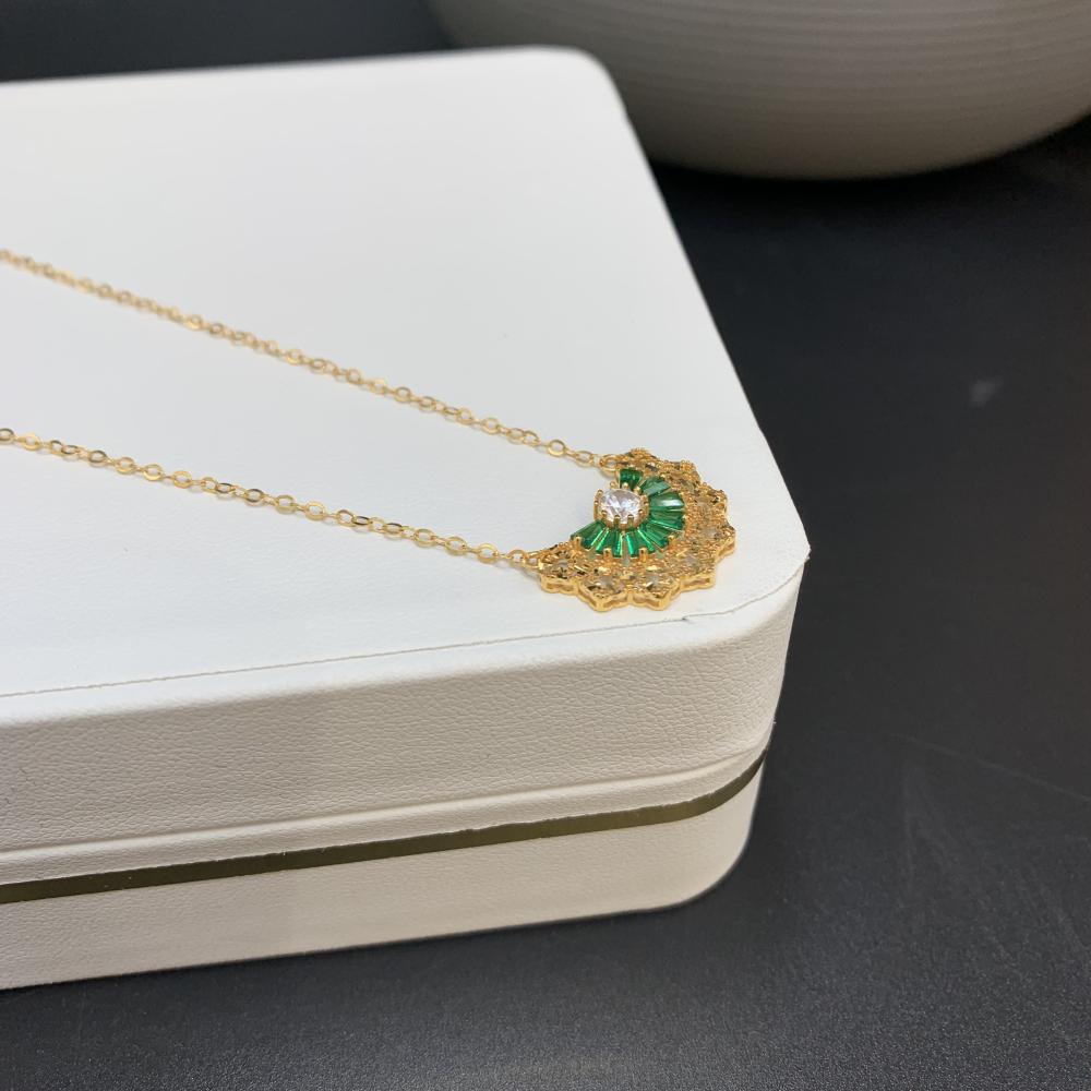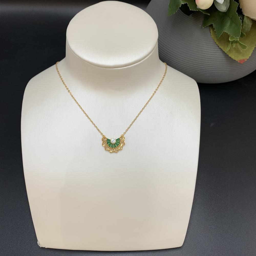 العقد يجسد العراقة والحداثة في آن واحد، ويضفي لمسة من الفخامة على أي إطلالة، سواء كانت لمناسبة خاصة أو كلمسة جمال يومية. اللون الأخضر الغني يعكس التنوع والجمال الطبيعي، مما يجعله قطعة مجوهرات مثالية لإضافة لمسة من التميز إلى ملابسك.