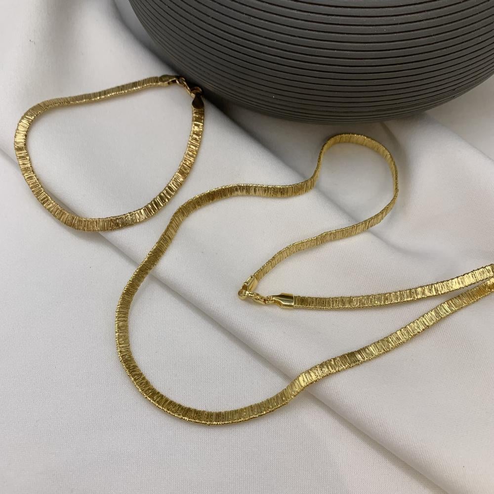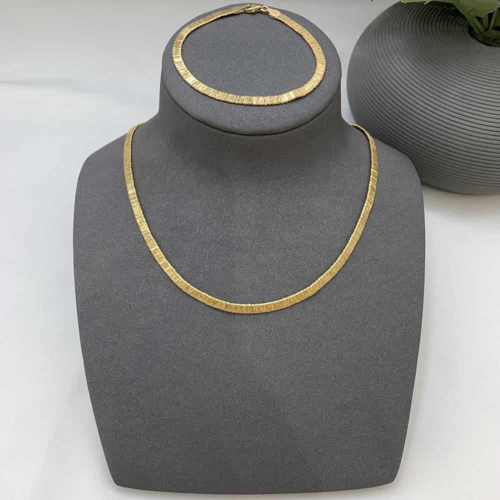 عقد واسواره الفلات الحريري عيار 18 إيطالي ذهب صافي الوزن 15