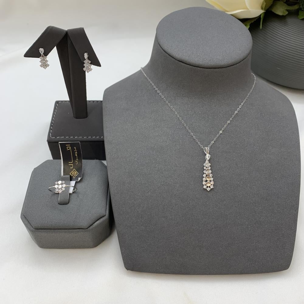 نص طقم ذهب ابيض تصميم الألماس عيار 18 الوزن 3.9