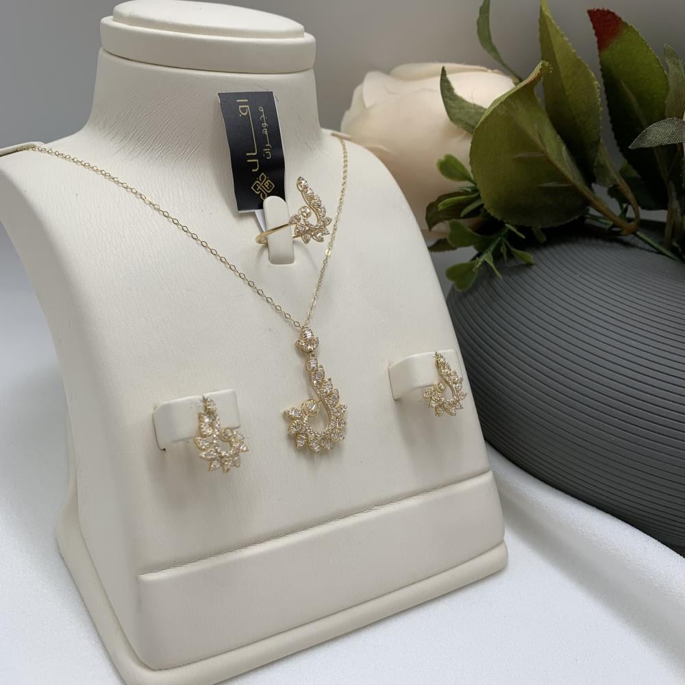 ارتقِ بجمالك مع نص طقم ذهب أصفر تصميم الألماس عيار 18 من متجر أفال للمجوهرات. تصميم يجمع بين البساطة الراقية والتفاصيل المتألقة ليضفي على إطلالتك لمسة من السحر والتميز.