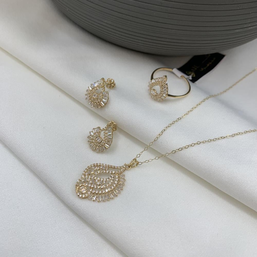 نص طقم ذهب تصميم الألماس عيار 18 الوزن 4.5