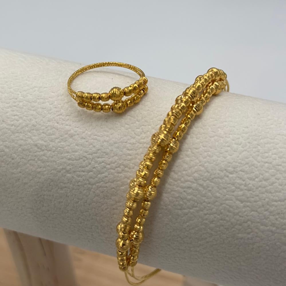 تميّزي بإطلالة فاخرة تعكس الذوق الرفيع مع طقم سوارة وخاتم بحريني مصنوع من ذهب أصلي عيار 21.